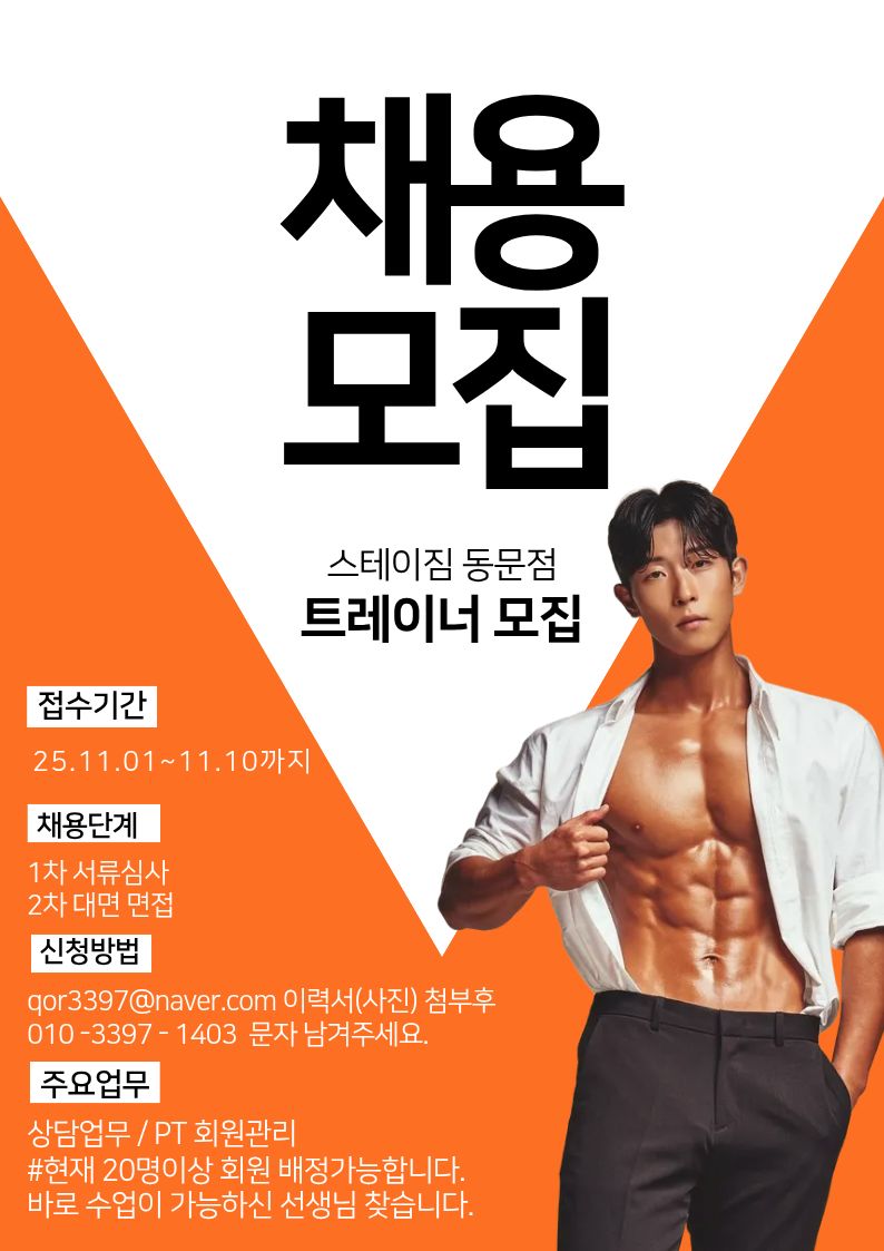 스테이짐 동문점 트레이너 구인 페이지 정보 작성자 스OO짐 작성일25-11-03 07:17 조회139회 연락처 010-3397-1403 급여 협의 : 3,000,000 이상 관련링크 본문 바로 수업이 가능하신 선생님 모집 합니다. 주소 : 제주특별자치도 제주시 동문로 80 3층 이전글 다음글 목록