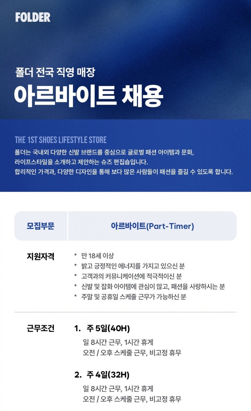 [폴더 신제주점] 주 4일 크루를 모집합니다.