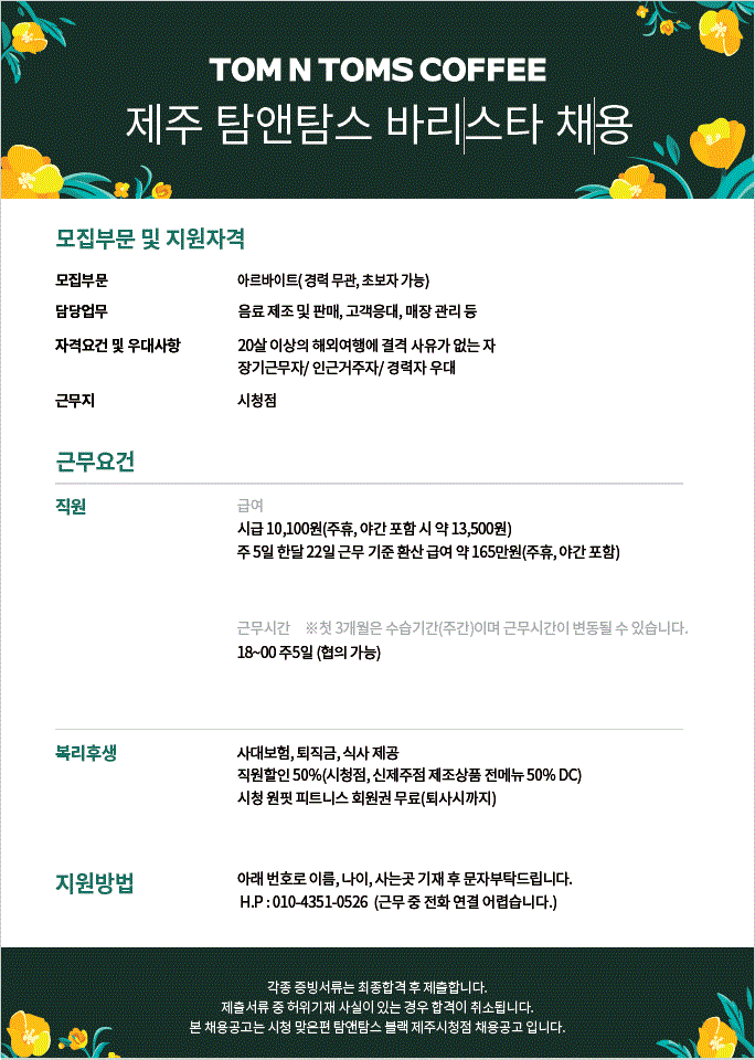 제주 시청 탐앤탐스 알바 구인 페이지 정보 작성자 TOOOOOOS 작성일25-09-20 11:16 조회560회 연락처 010-4351-0526 급여 시급 : 10100 관련링크 본문 사진 참조 부탁드립니다.!! 주소 : 제주특별자치도 제주시 중앙로 236 문산빌딩 1층 이전글 다음글 목록