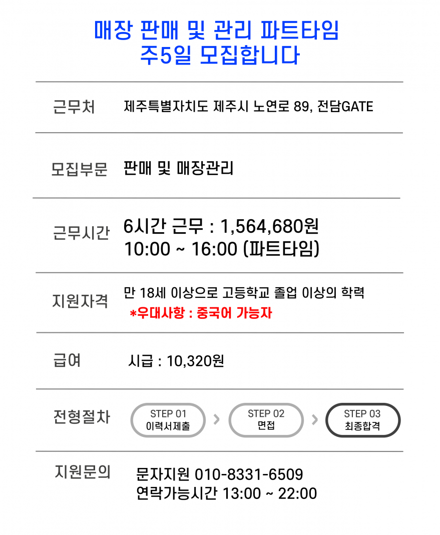 ★★★세상에서 제일 쉬운 파트타임 직원을 모집합니다★★★ 페이지 정보 작성자 전담 작성일25-12-09 18:42 조회251회 연락처 010-8331-6509 급여 시급 : 10,320 관련링크 본문 ■ 주업무 : 고객이 물건 선택하면 결제 후 봉투에 담아드리기.외워야 할 내용 거의 없음.■ 근무지 : 연동 주소 : 제주특별자치도 제주시 노연로 89 1층 전담GATE 이전글 다음글 목록