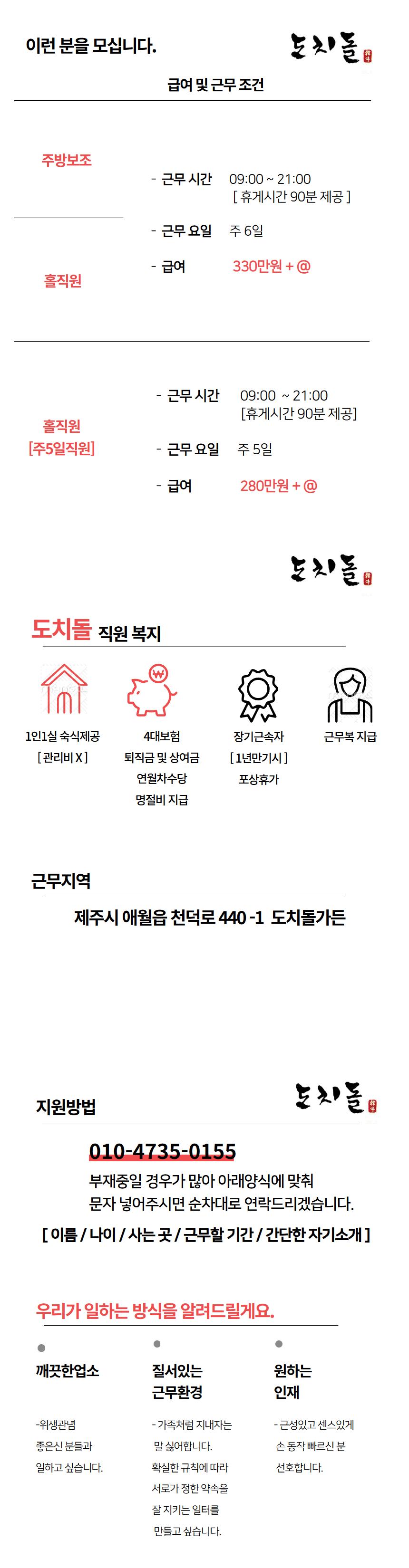[숙식제공/1인1실]_330만원_주방보조,_홀직원_모집 페이지 정보 작성자 gOOOOOOOOO8 작성일25-10-19 11:30 조회244회 연락처 010-4735-0155 급여 월급 : 330만원 관련링크 본문 . 주소 : 천덕로440-1 이전글 다음글 목록
