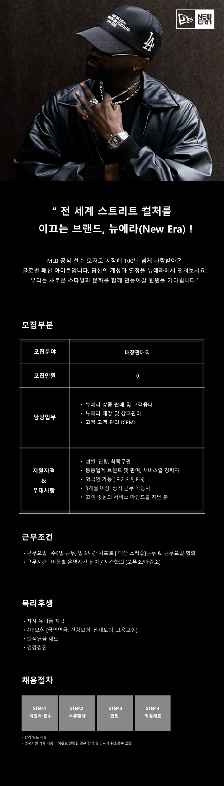 - 근무요일&근무시간: 주 5일 , 일9시간(휴게시간 1시간 포함) 스케줄근무