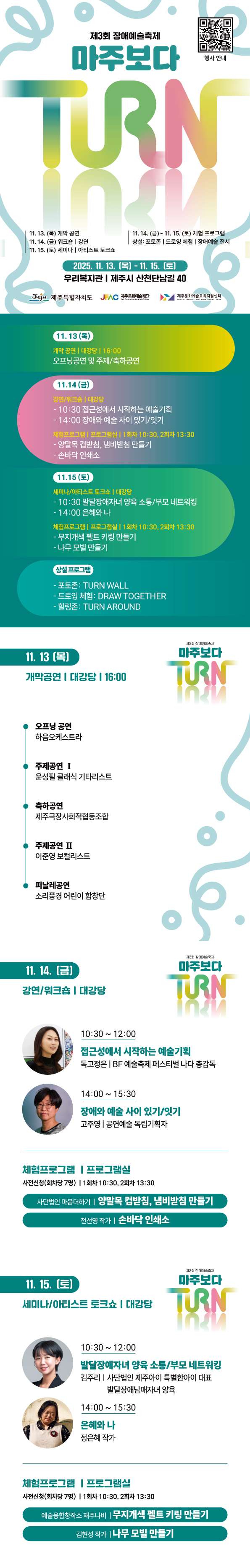 기타 | 2025년_장애예술축제_턴(TURN)_<마주보다>_프로그램_신청_안내 페이지 정보 작성자 이바 작성일25-11-11 16:08 조회1,776회 연락처 010-0000-0000 관련링크 본문 세부사항https://www.jfac.kr/notification/notice/19568?page=1 이전글 다음글 검색 목록