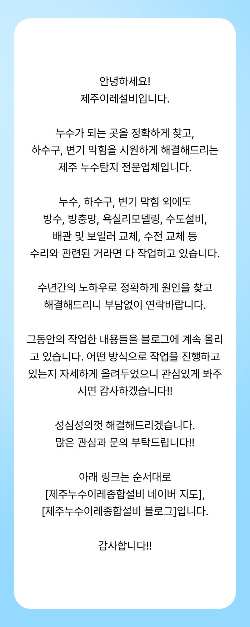 제주이레설비입니다. 페이지 정보 작성자 제OOOO비 작성일25-12-16 20:36 조회2회 연락처 010-3955-7946 관련링크 본문 안녕하세요!제주이레설비입니다. naver.me/Gn0SEyoh blog.naver.com/jeju_jireh 다음글 목록